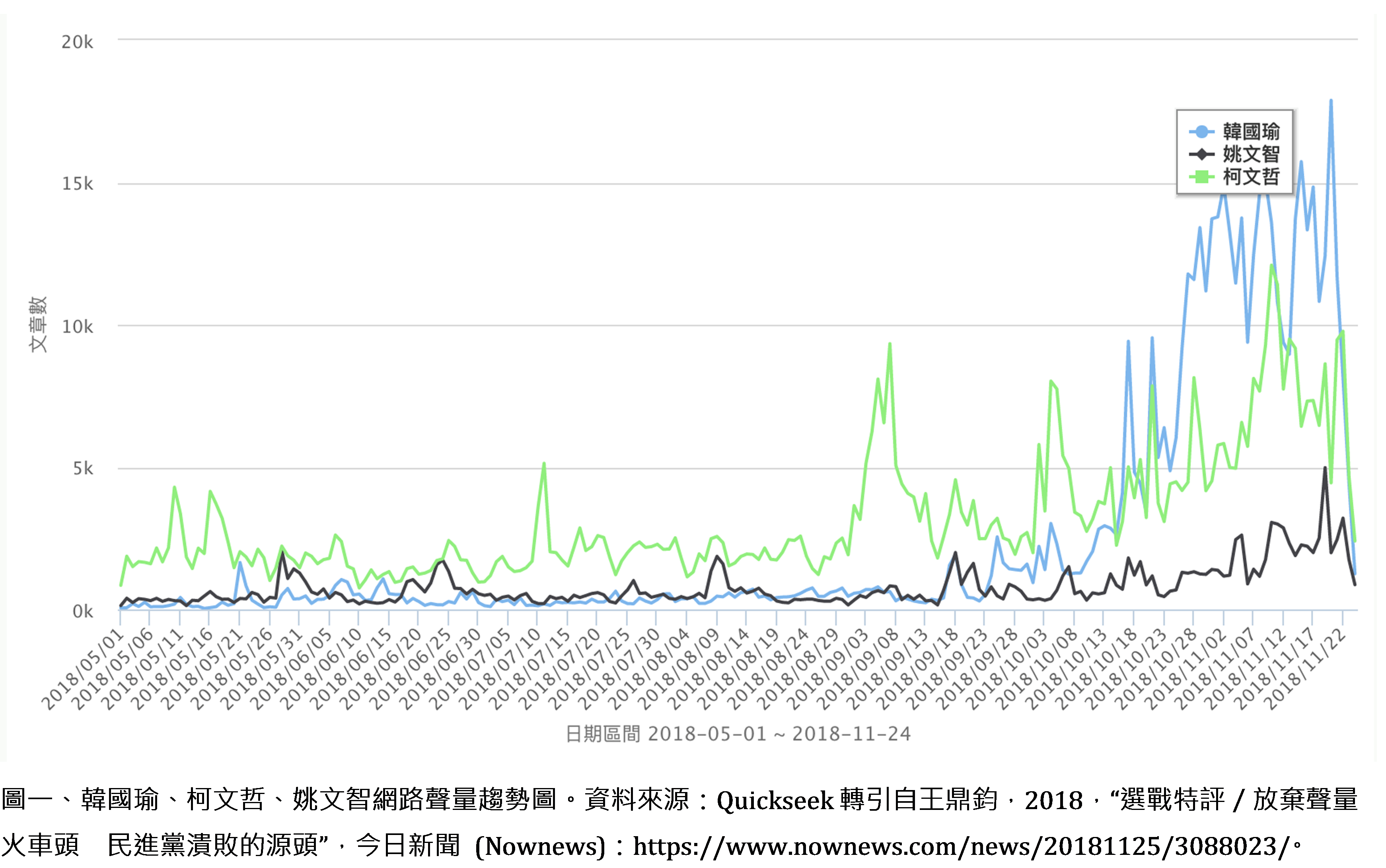 相對於同性婚姻已經是延燒兩年的議題、一例一休也早就無關緊要,年金改革的裁定書大約七八月間送達,因此韓流的崛起發生在九月初。如果韓國瑜受歡迎的主要區域是高雄,或許並不令人意外,比較奇怪的是:為何韓國瑜的效應會輻射到高雄市以外的其他縣市?例如,民進黨候選人台中市林佳龍與新北市蘇貞昌也以大比數落後,台南市黃偉哲只是險勝。