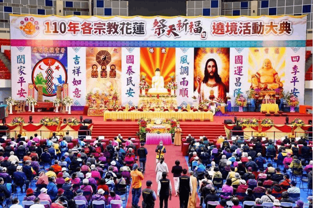 花蓮縣政府每年花費約新台幣3000萬元,邀請各宗教團體(佛教、道教、一貫道、天主教、原住民祖靈等),一同舉辦「五教聯合祭天祈福暨遶境活動」。