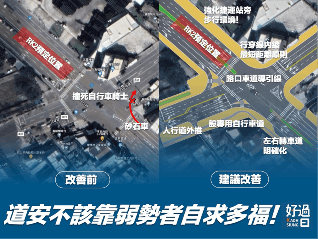 下圖是「高雄好過日協會」提出的道路設計改善方案。