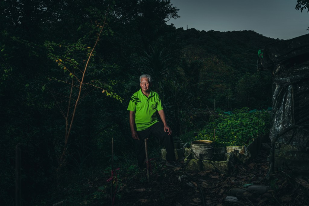 從客運駕駛退休後的柯茂琳回到猴硐,成立猴硐地方永續發展協會,致力於推廣鐘萼木保育。照片中他站在曾經的捨石場,現已闢為菜園,而鐘萼木就遍布在煤礦廢石推砌而成的「捨石山」中。柯茂琳在農耕之餘,也會到處撿拾掉落的鐘萼木種子,重新種植、進行復育。