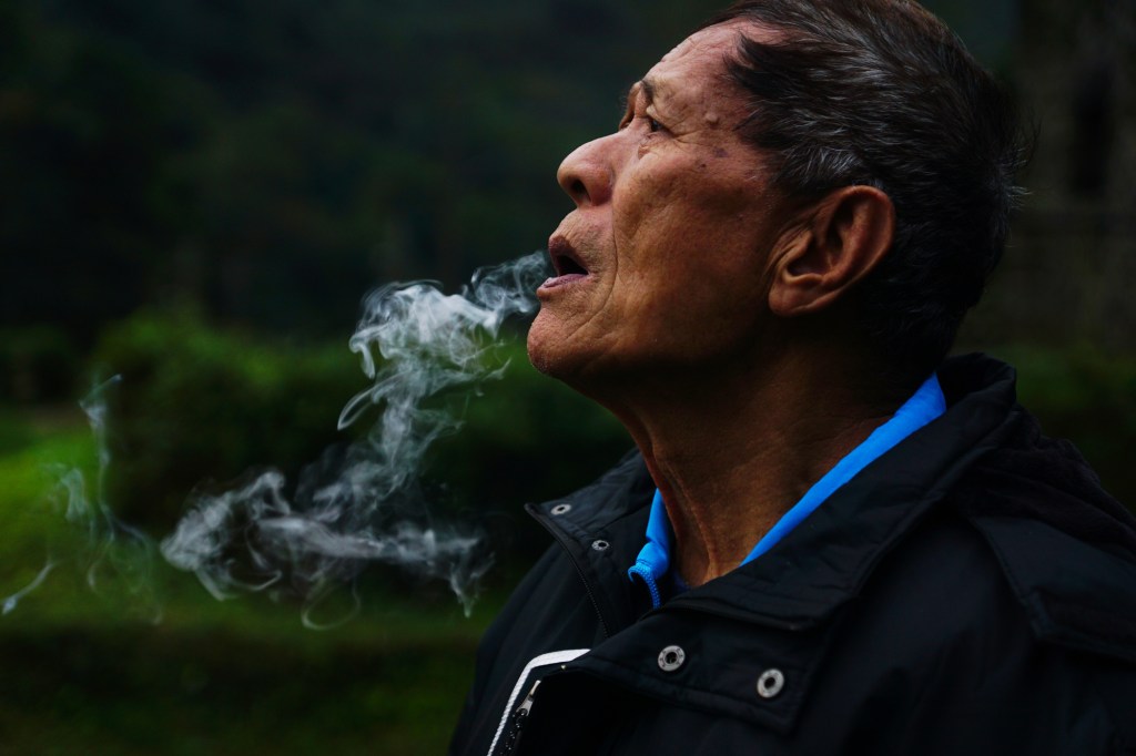 每日上工如從鬼門關前走一回,許多礦工為紓解壓力而有菸癮,林政雄亦是如此。清晨帶著沉重入坑,不捨思緒飄在坑外;下工出坑一掃稍早的陰霾,終於能弛下整天緊繃的精神,點燃香菸,緩緩吸吐煙霧,讓壓力隨之消散。