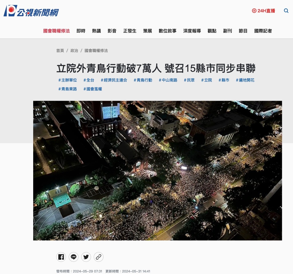 目前全國各地針對「反對國會擴權」議題所延伸的公民自主倡議仍持續進行,顯見上一波立院集結行動已引發社會效應。6月19至21三日,民間團體再度發起立法院集結行動,我們小組也會努力持續追蹤。