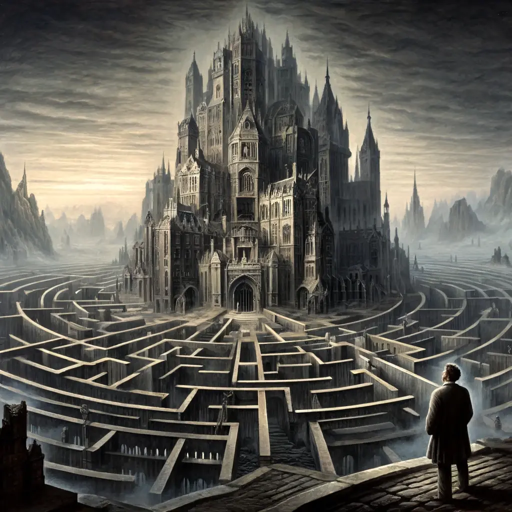 小說家卡夫卡善於描繪人在官僚科層制度中的種種荒謬,他把司法體系與辦公室比喻成迷宮,人們在其中闖蕩的歷程如同一部史詩。